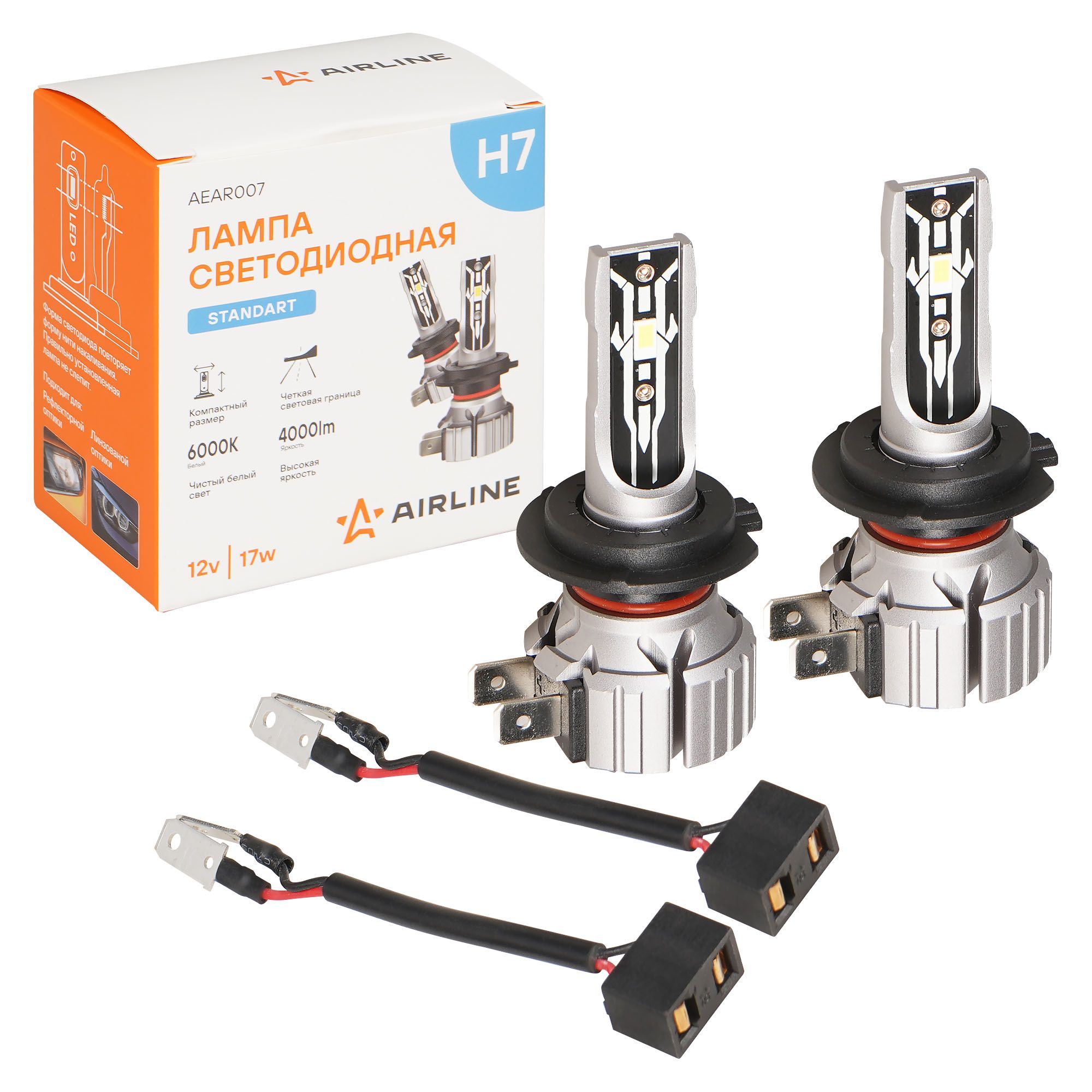 Лампа светодиодная H7 12V 17W 6000K AIRLINE LED P43t Standart для для рефлекторной линзованной оптики 2 шт. Airline