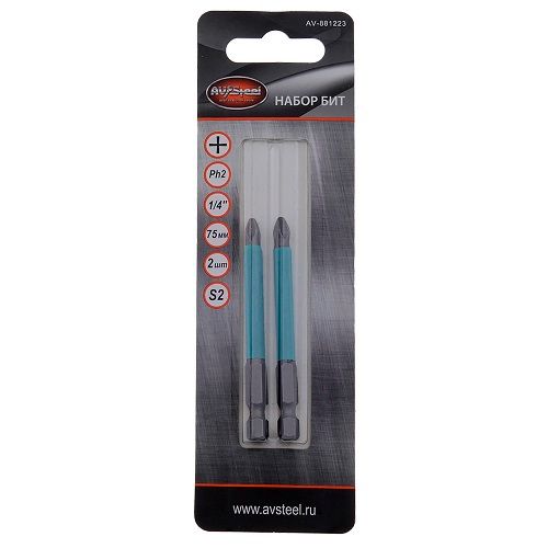 Биты PH2 75мм S2 2шт AV Steel