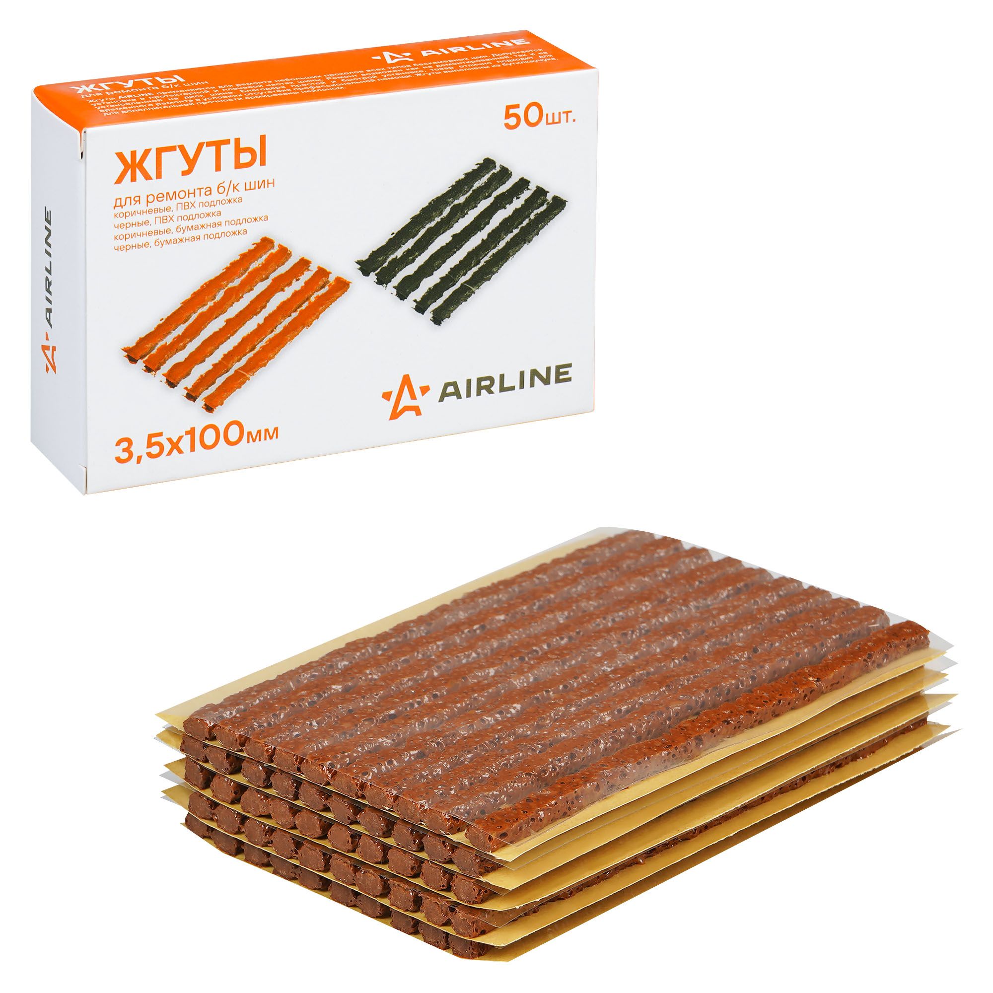 Жгуты для ремонта б/к шин, 3.5*100мм, 50 шт., коричневые, бумажная подложка, в к Airline