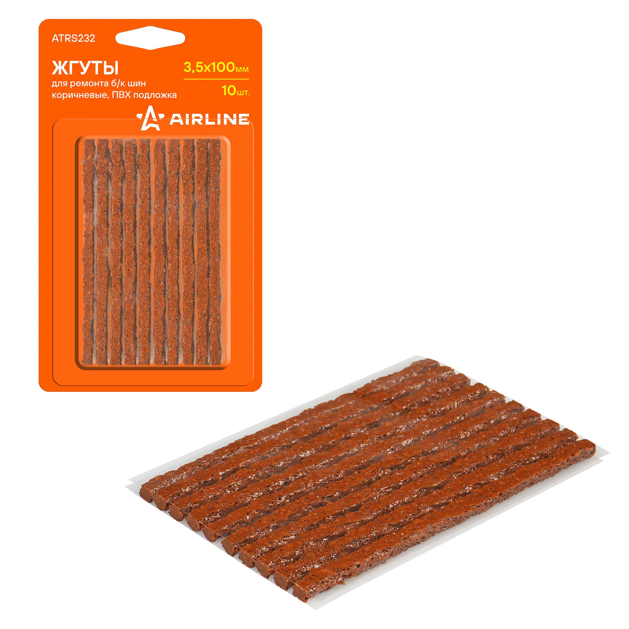 Жгуты для ремонта б/к шин, 3.5*100мм, 10 шт., коричневые, ПВХ подложка, в блисте Airline