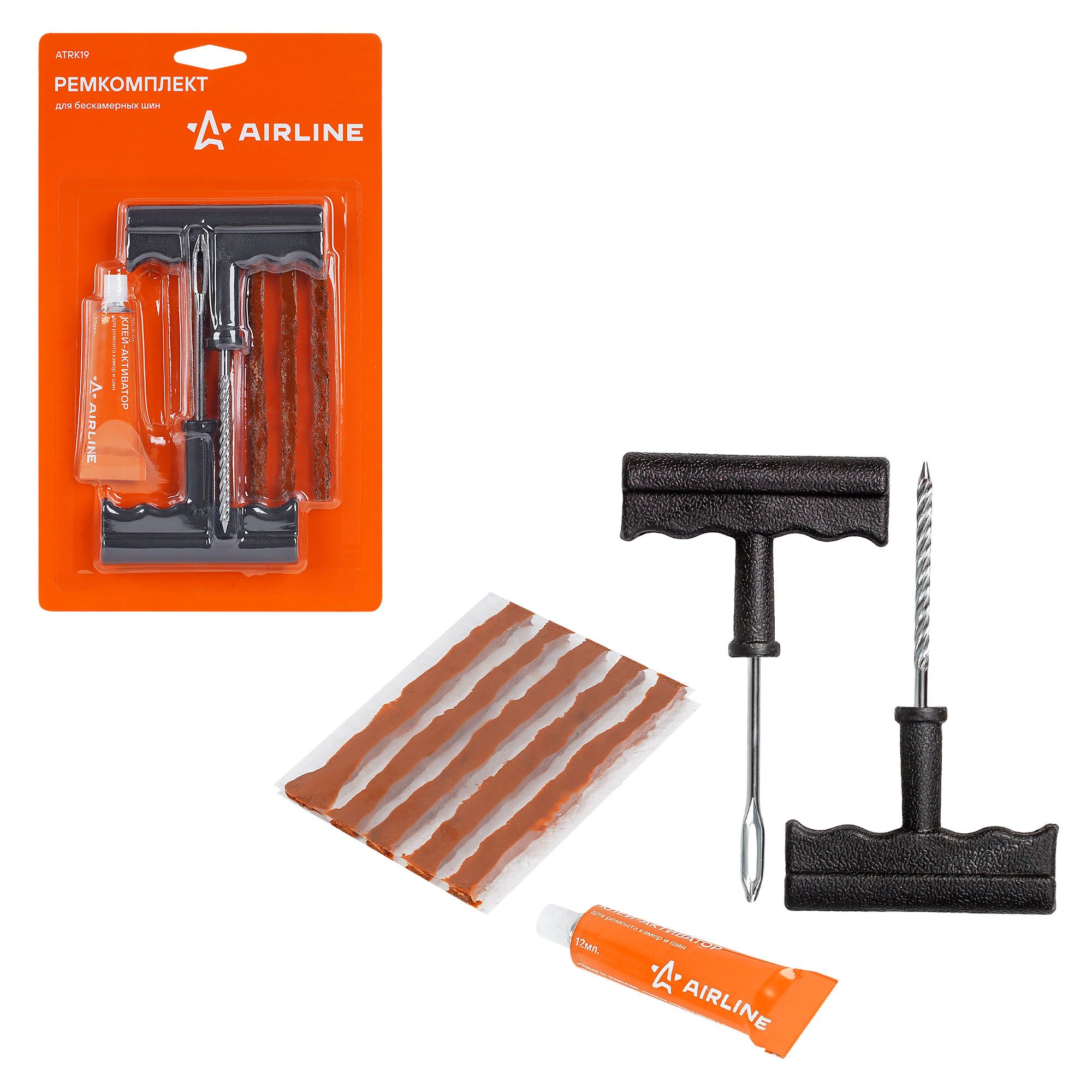 Набор для ремонта бескамерных шин с клеем-активатором, 5 жгутов Т-ручки (Airline) 'ATRK19 Airline