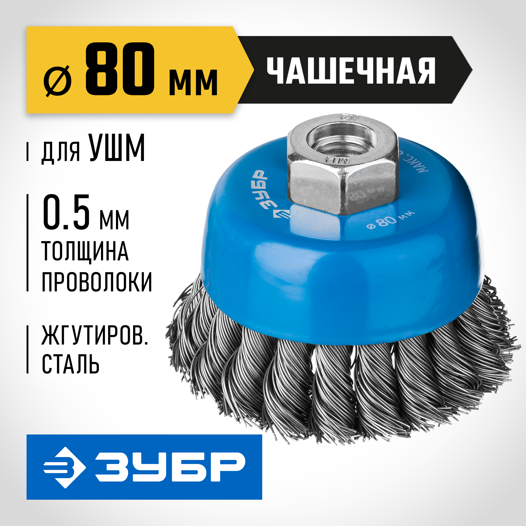 ЗУБР 80 мм, стальная проволока 0.5 мм, чашечная щетка-крацовка для УШМ, Профессионал (35275-080) Зубр