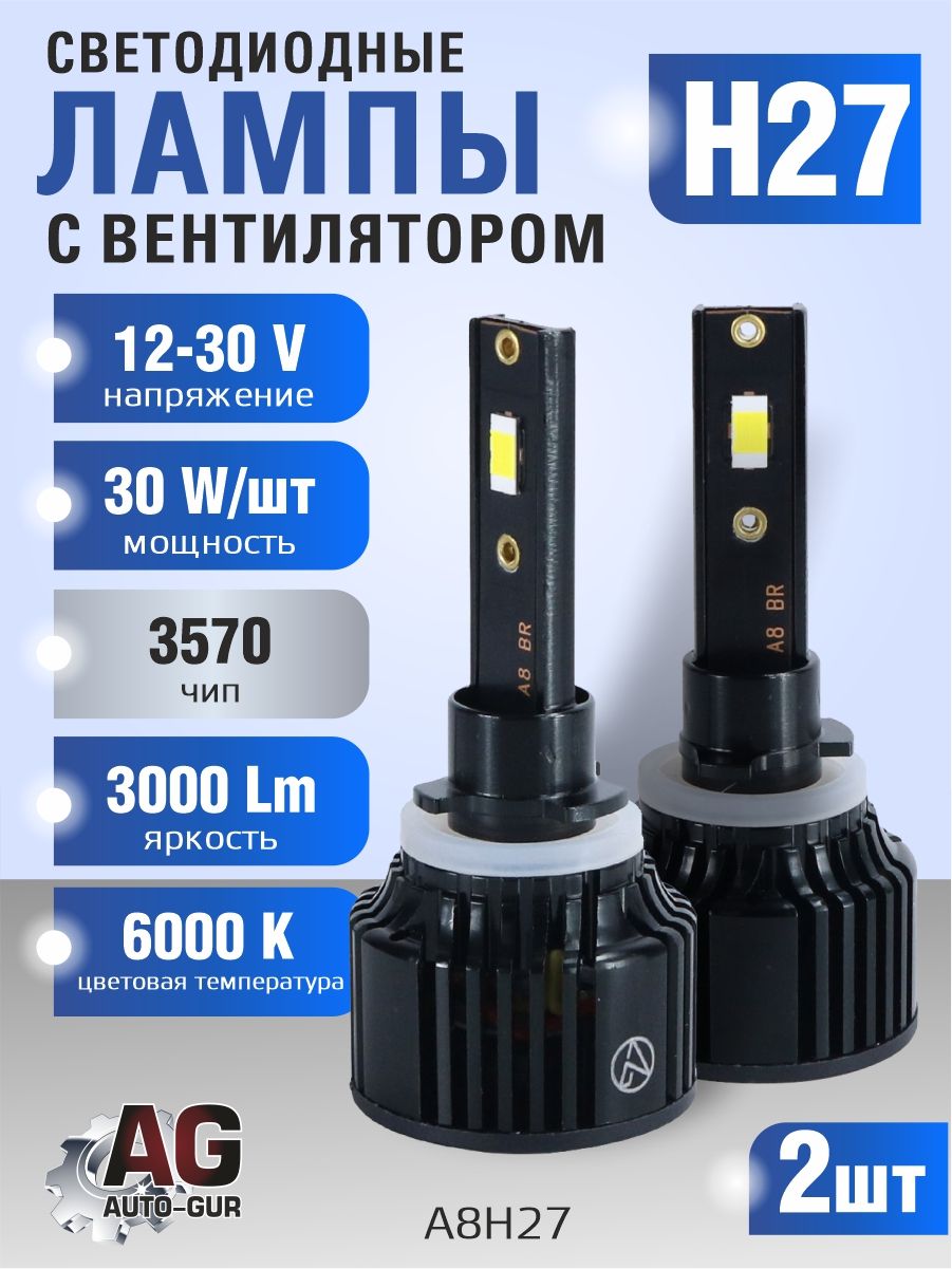 Светодиодные лампы H27 (с вентилятором) (2шт) 10-30V,30W/шт,6000K,3570 чип,3000LM AUTO-GUR