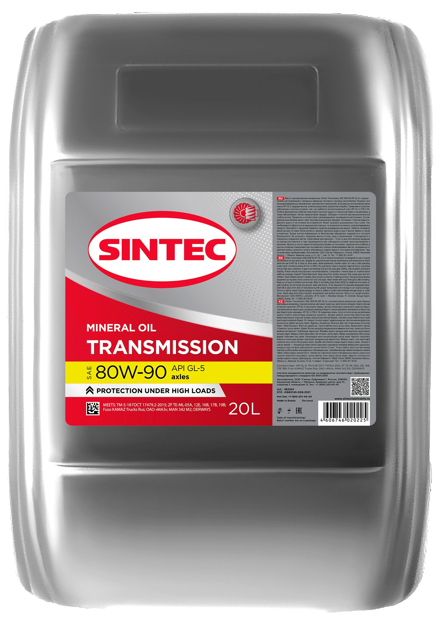 SINTEC Транс ТМ5-18 (GL-5) 80w90 20л масло трансмиссионное Sintec