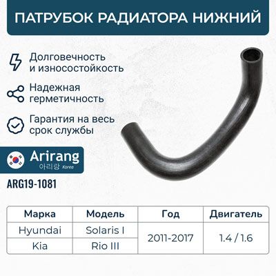 Патрубок радиатора hyundai solaris 2014- нижний