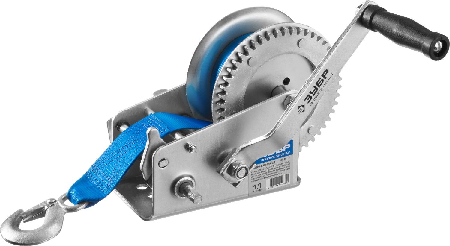 ЗУБР 1.1 т, 10 м, ручная барабанная тяговая ленточная лебедка, Профессионал (43115-1.1) Зубр
