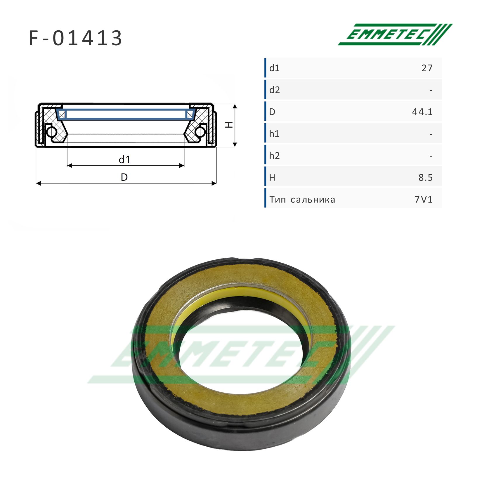 Сальник рулевой рейки 27*40.2*8.5 (7V1) Emmetec
