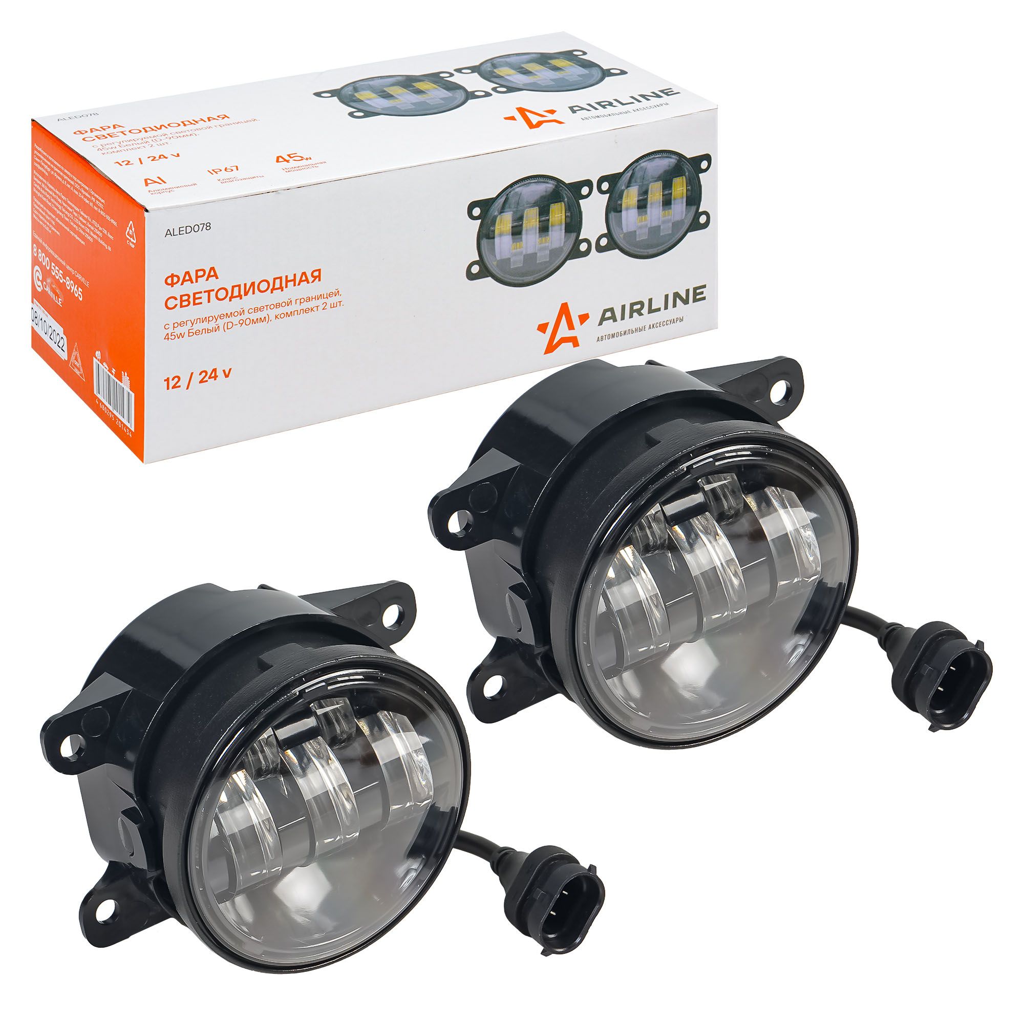 Фара светодиодная Airline регулир.свет.граница для а/м Lada Vesta; для а/м ВАЗ Granta, 45W Б/Ж, кмпл Airline