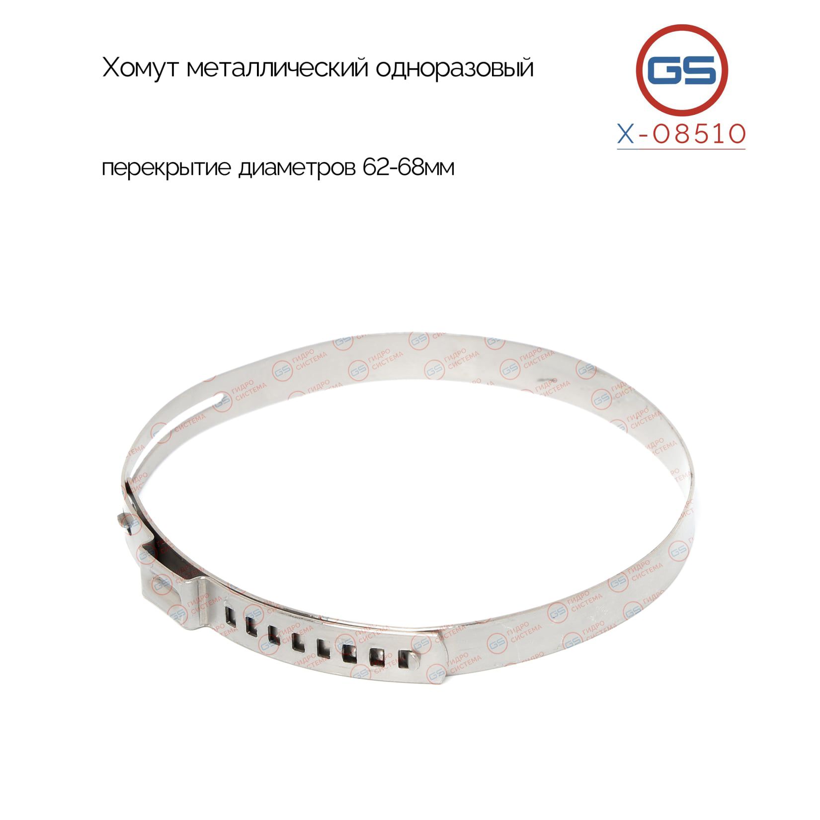 Хомут металлический одноразовый, перекрытие диаметров 6268мм GS