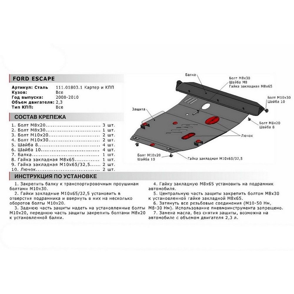 Москва | 28052 | Alfeco | ALF0718 | Защита картера и КПП (сталь 2 мм) + комплект крепежа для Ford Escape II 2008-2012 (V - 2.3) | 1 шт | 4 дн | 216,78 Br | 279,41 Br | |