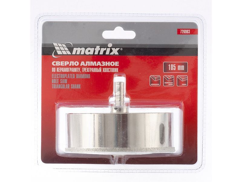 Сверло алмазное по керамограниту, 105 х 67 мм, 3-гранный хвостовик// Matrix