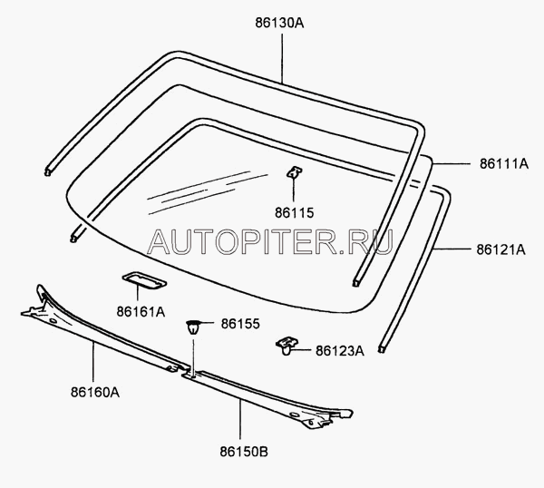 - 86111-5h000 стекло лобовое