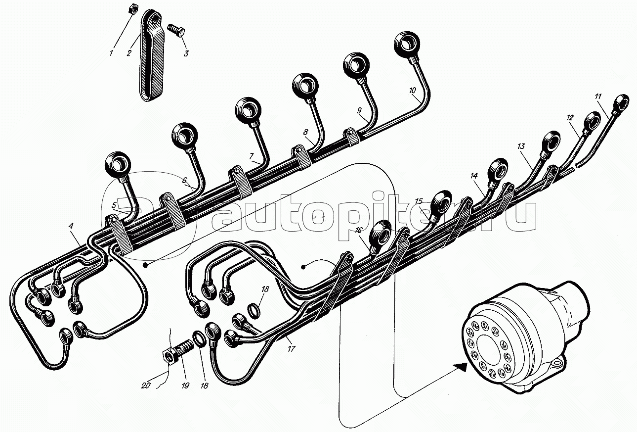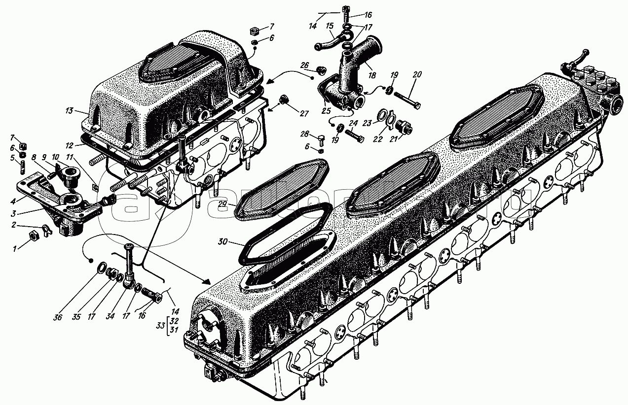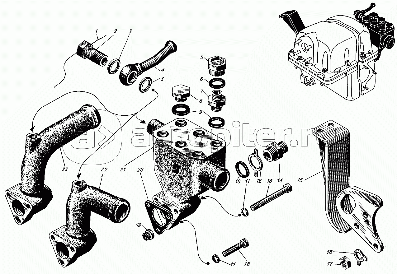 Патрубки правого блока цилиндров