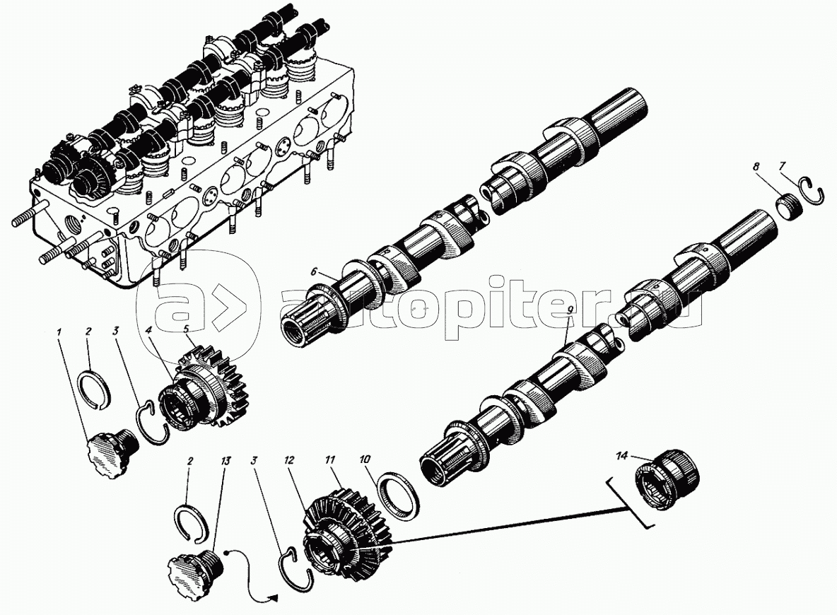 Распределительные валы правого блока цилиндров