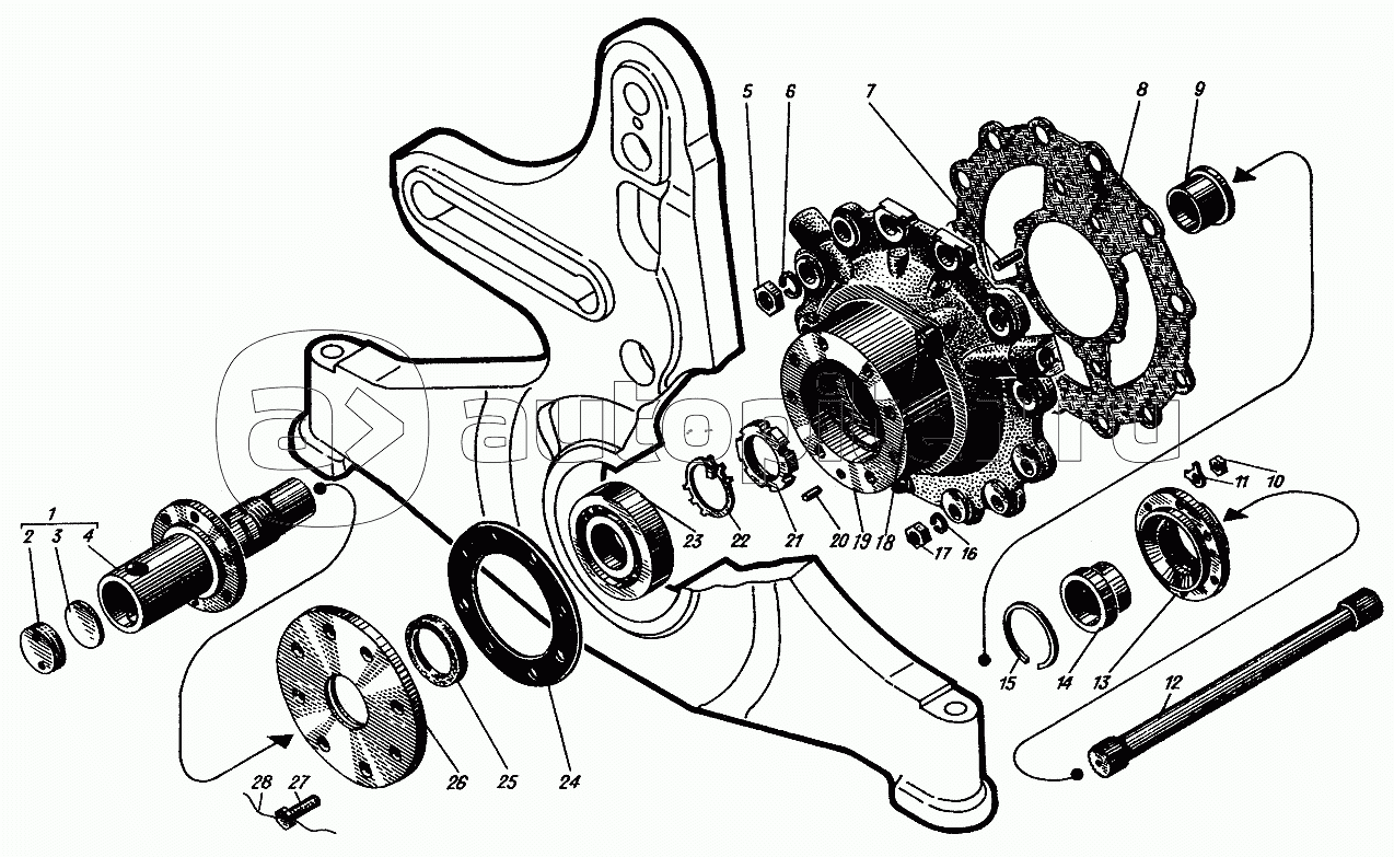 Левая опора валика (для дизелей, выпущенных до июня 1975г.)