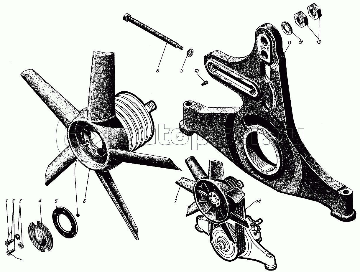 Передняя балка и крыльчатка вентилятора