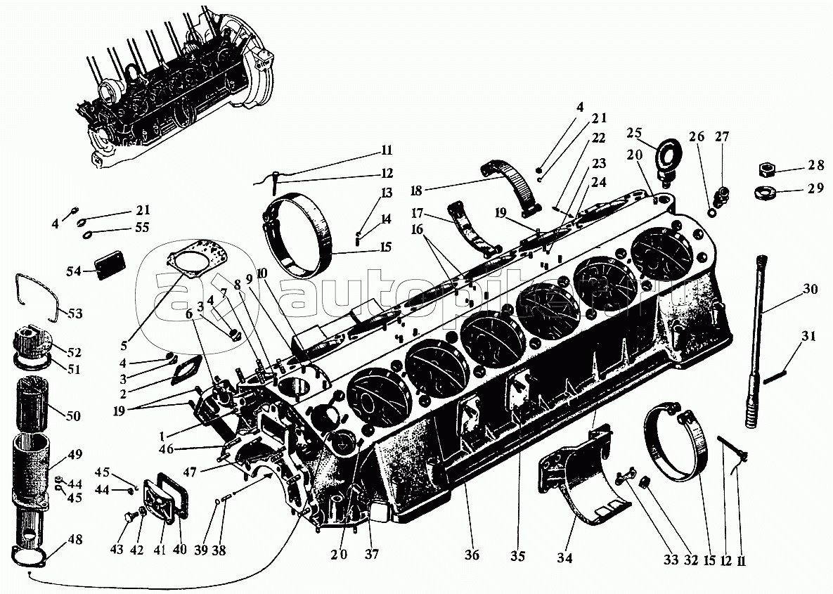 Детали блока цилиндров для дизелей выпуска до 1998г.