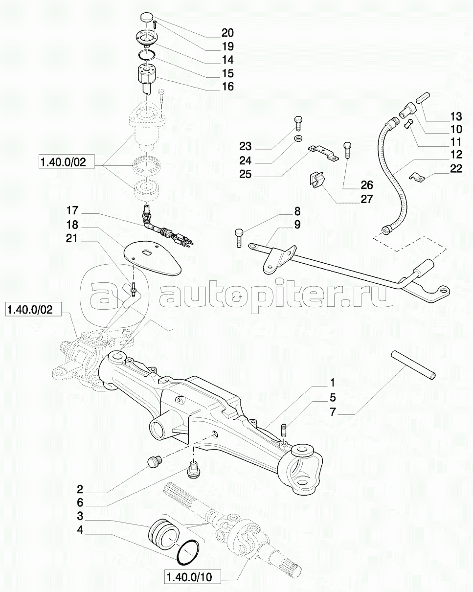 4WD FRONT AXLE WITH SUSPENSIONS, BRAKE, TERRALOCK - SUPPORT