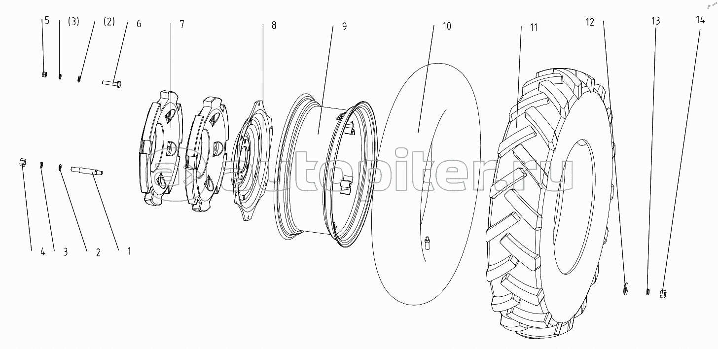 Air FilterRadiatorThroffle Control MechanismClutchExhaust pipeFrameDrive AxleWheelTractor DrawbarTraction device assemblTransmissionHydraulicBrake Operation MechanismSeatHood and PanelElectrical SystemToolboxFuel tankSuspension MechanismMultiple Directional Control Valve Operation MechanismFront Balance WeightSunshadeEngine