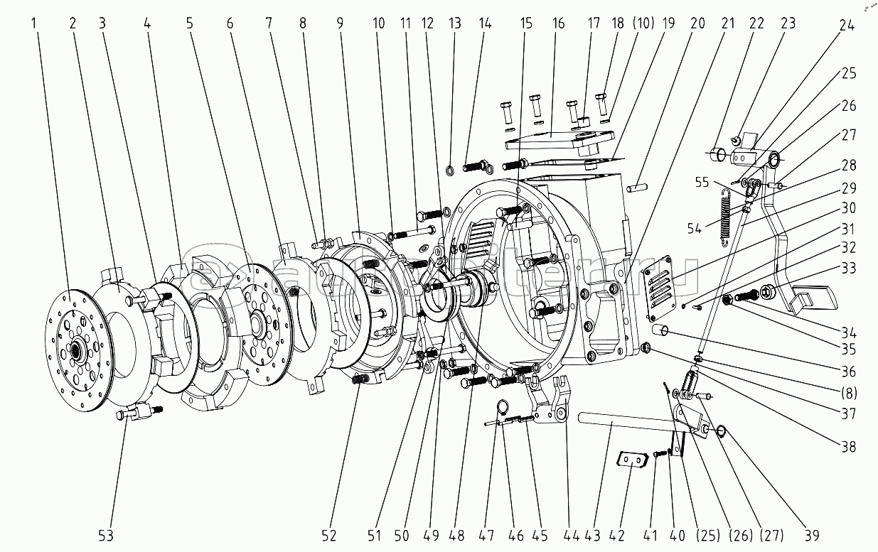 Air FilterRadiatorThroffle Control MechanismClutchExhaust pipeFrameDrive AxleWheelTractor DrawbarTraction device assemblTransmissionHydraulicBrake Operation MechanismSeatHood and PanelElectrical SystemToolboxFuel tankSuspension MechanismMultiple Directional Control Valve Operation MechanismFront Balance WeightSunshadeEngine