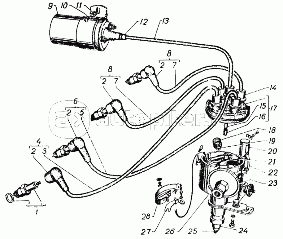 Катушка зажигания, свечи запальные, распределитель