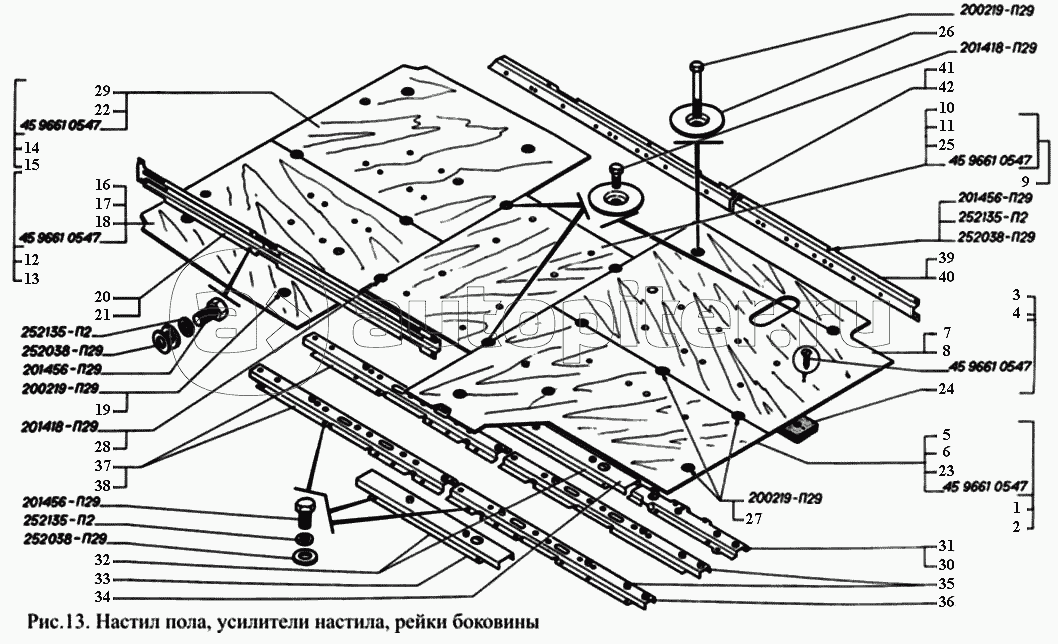 Настил пола, усилители настила, рейки боковины