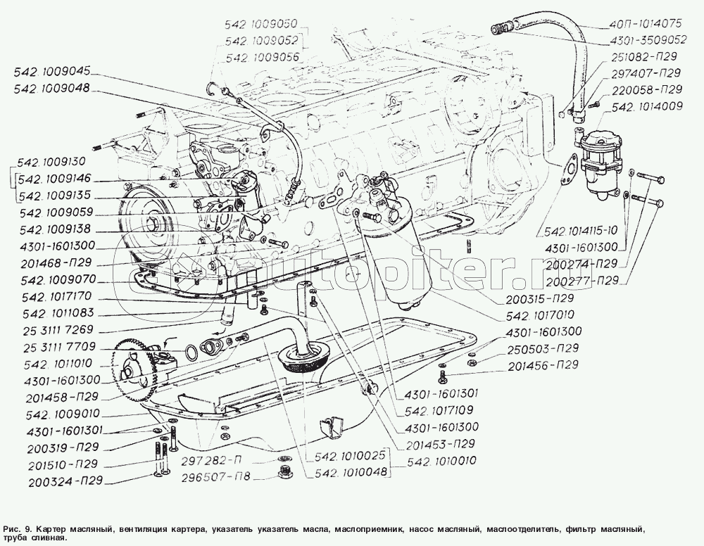 Картер масляный, вентиляция картера, указатель уровня масла, маслоприемник, насос масляный, маслоотделитель, фильтр масляный, труба сливная