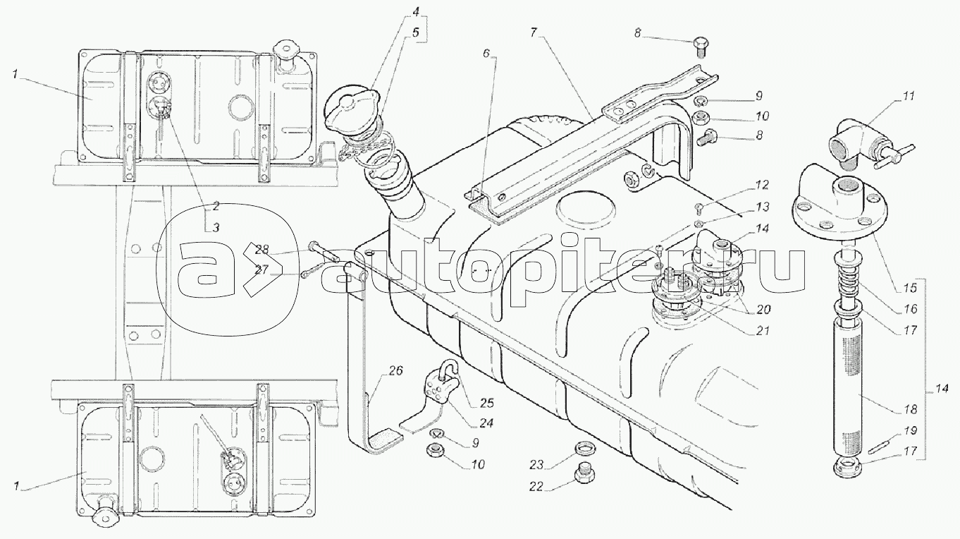 Установка топливных баков автомобиля с дв. ЗМЗ-4063