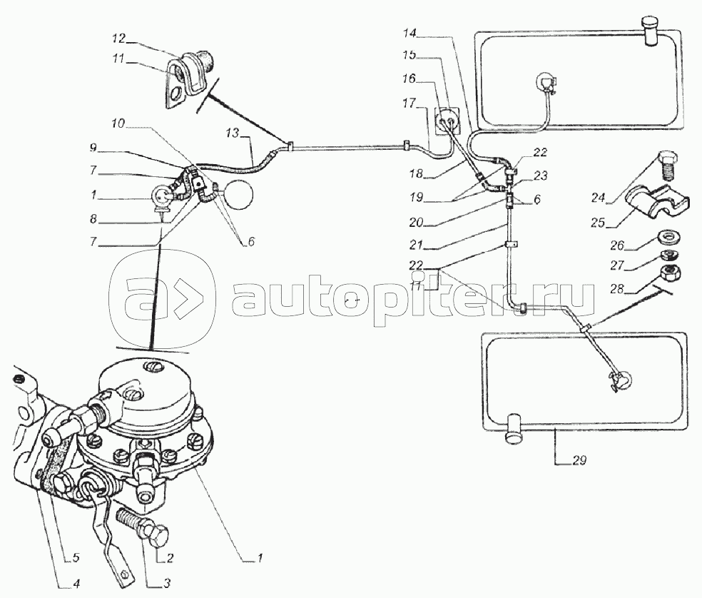 Трубопроводы топливные автомобиля с дв. ЗМЗ-4063 и двумя топливными баками