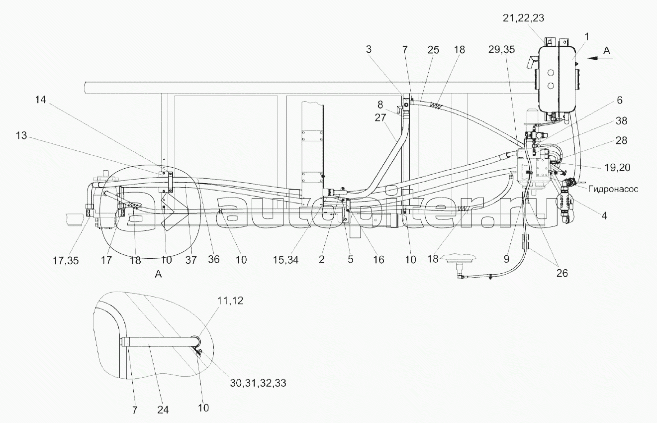Гидросистема привода ходовой части КВС-2-0601000В (вид слева)
