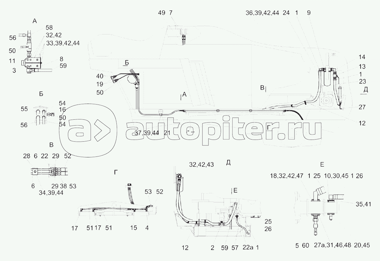 Гидросистема привода ходовой части КВС-2-0601000В (вид сверху)