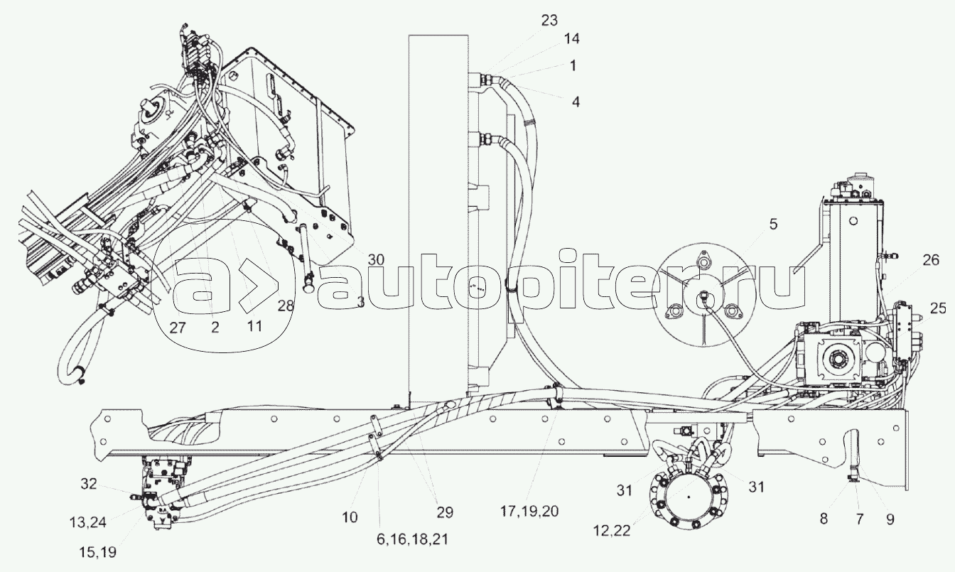 Гидросистема привода ходовой части КВК-2-0601000 (вид сбоку)