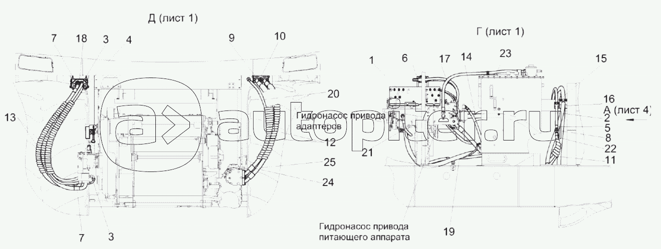 Гидросистема привода питающего аппарата и адаптеров КВК-2-0604000 (лист 4)