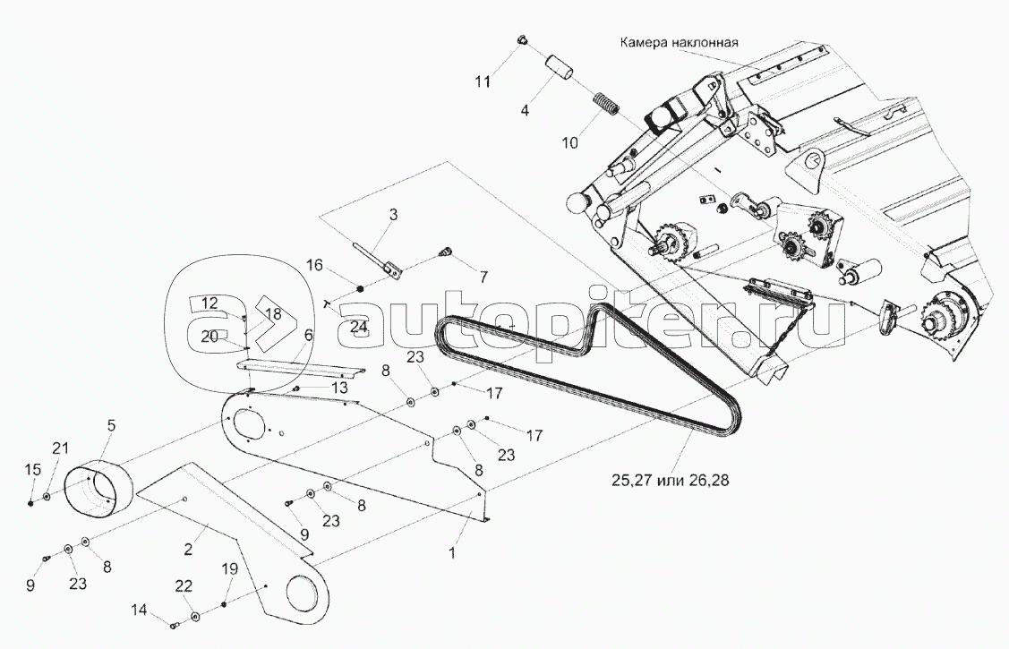 Камера наклонная. Привод транспортера