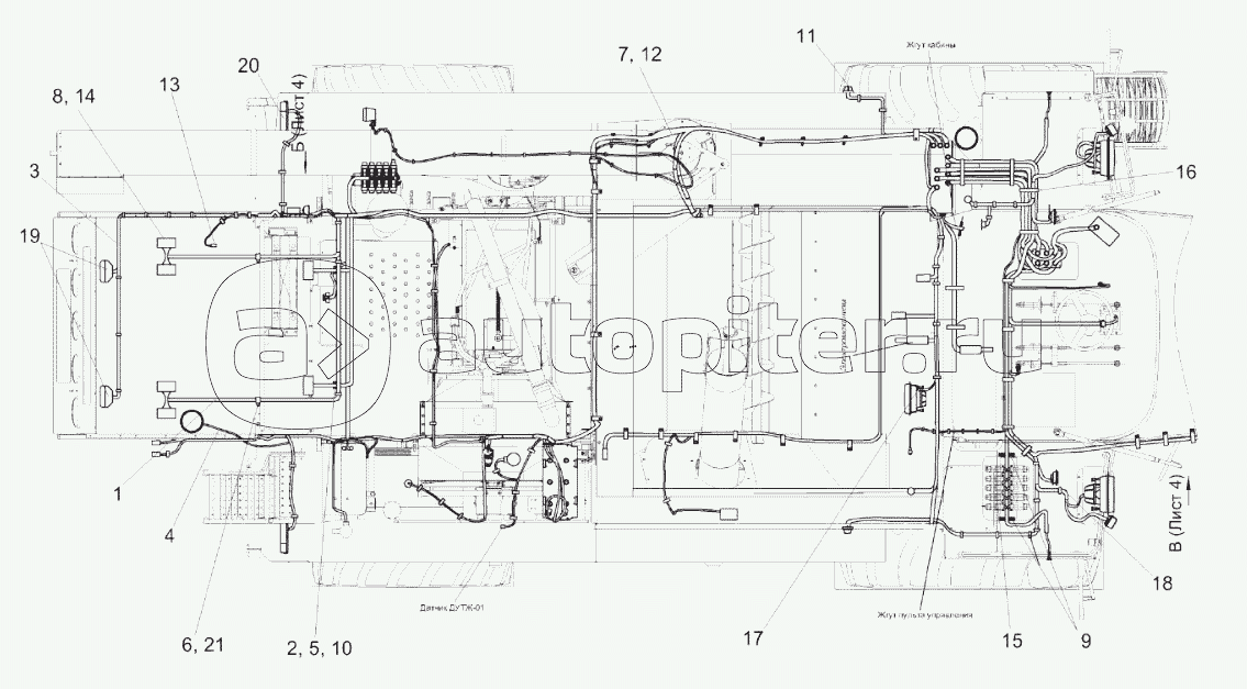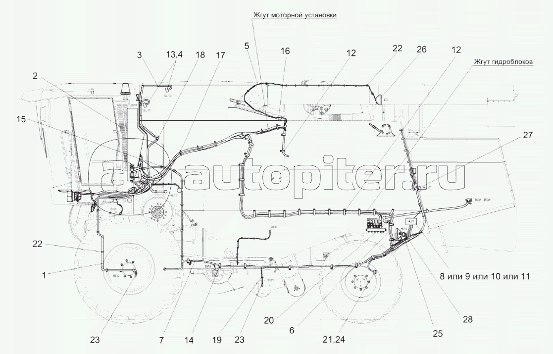 Электрооборудование молотилки самоходной КЗК-10-3-0100000 (вид сверху)