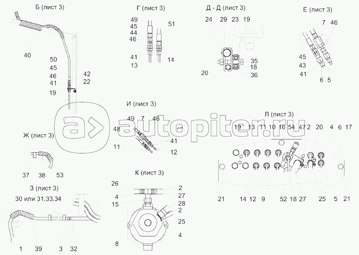 Гидросистема рулевого управления и силовых гидроцилиндров КЗК-8-3-0602000 (лист 3)