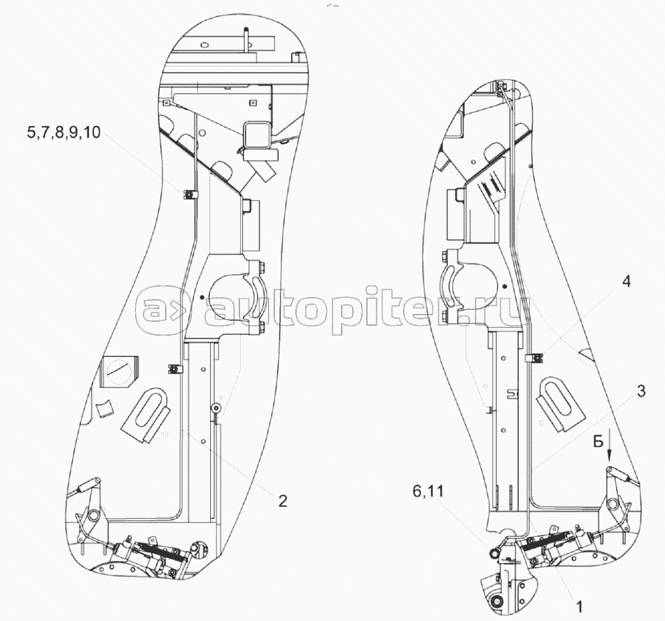 Установка тросов управления стояночным тормозом КЗК-8М-0119610
