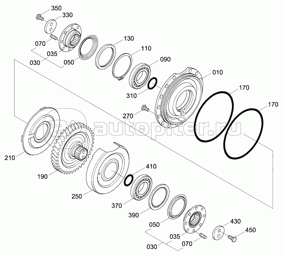 FRONT AXLE OUTPUT GROUP (-#0425)