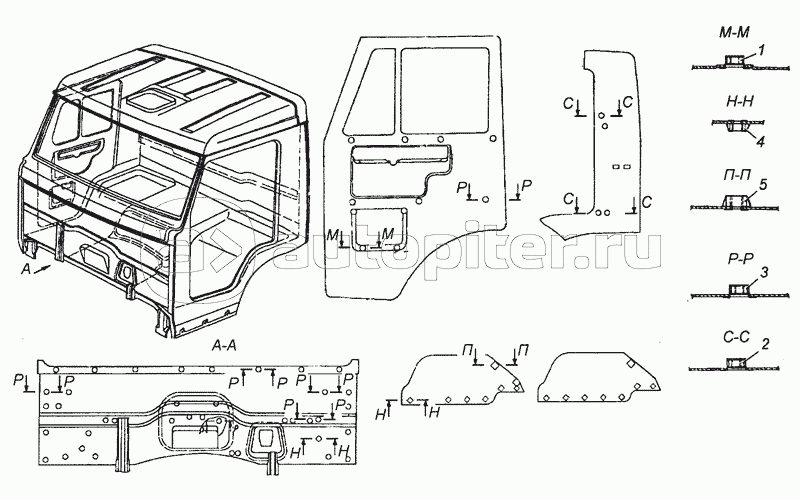 54105-5000064 Установка вставных гаек на кабину