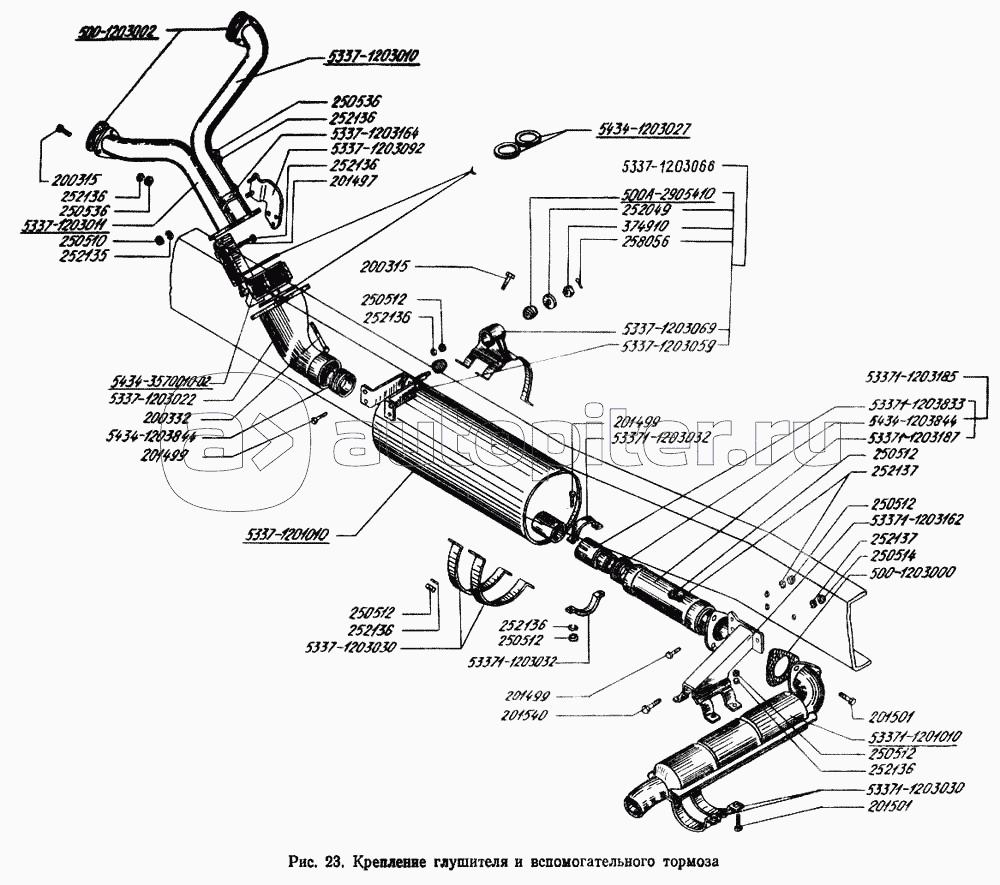 Крепление глушителя и вспомогательного тормоза