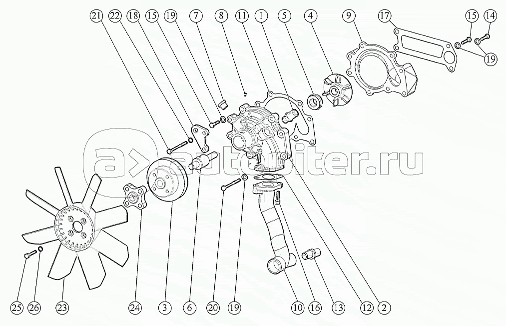 Установка водяного насоса. Установка вентилятора