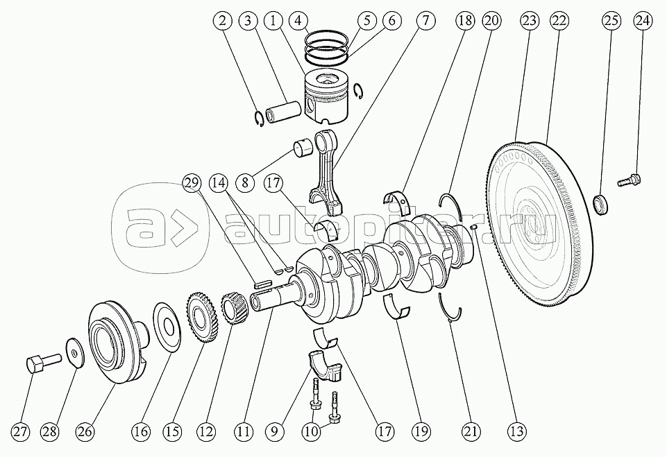 Кривошипно-шатунный механизм. Установка маховика