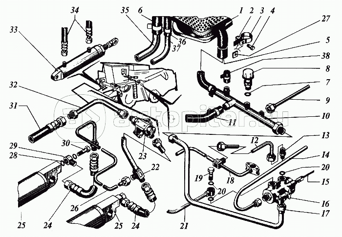 Оборудование основной гидросистемы с уст. двигателя ЯМЗ-238АК (1500Б, 1200Б)