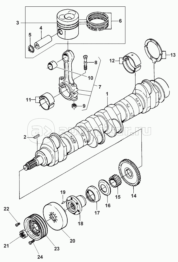 CRANKSHAFT, PISTONS AND CONNECTING RODS