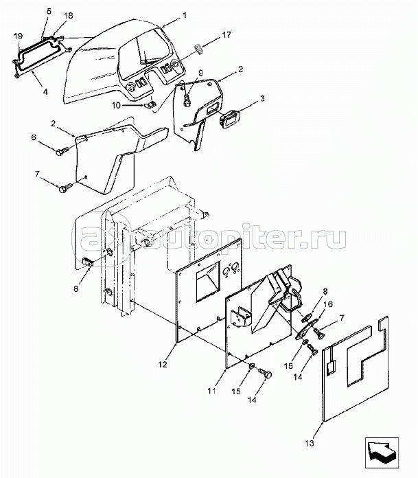 15F02 Каркас и лицевая панель правой панели управления
