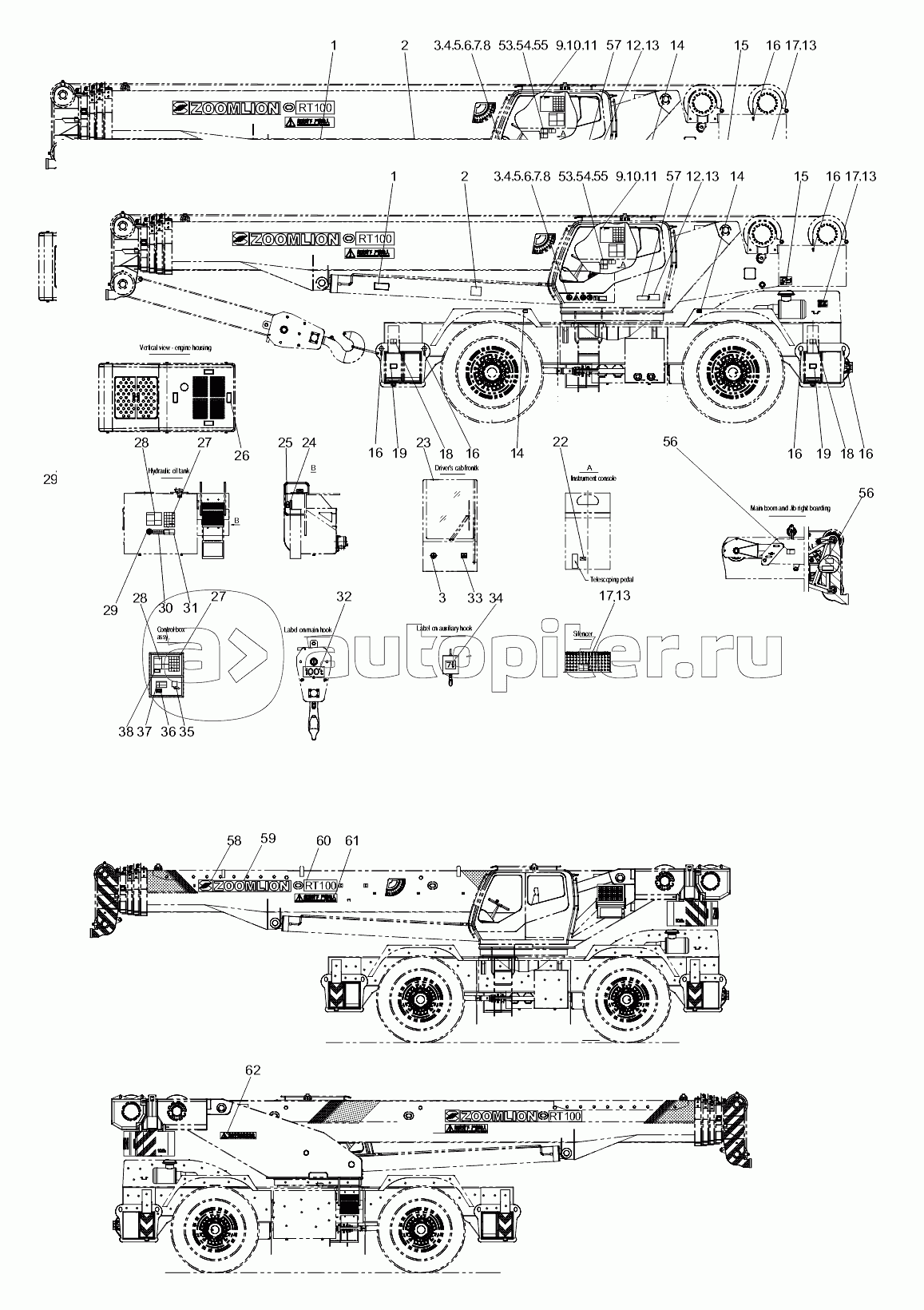 REMARKSRT551 ROUGH TERRAIN CRANEENGINE AND TRANSMISSIONFRONT AND REAR AXLEWHEEL AND RIMSTEERING SYSTEMTOOLBOX AND PLATFORMELECTRICAL SYSTEM (HIRSCHMANN)CENTRE REVOLVING JOINTHYDRAULICCHASSIS FRAME VALVE INSTALLATIONTURNTABLE VALVE INSTALLATIONSLEWING VALVESCHEMATIC DIAGRAM-HYDRAULICSWING SYSTEMWINCH MECHANISMDRIVER'S CAB